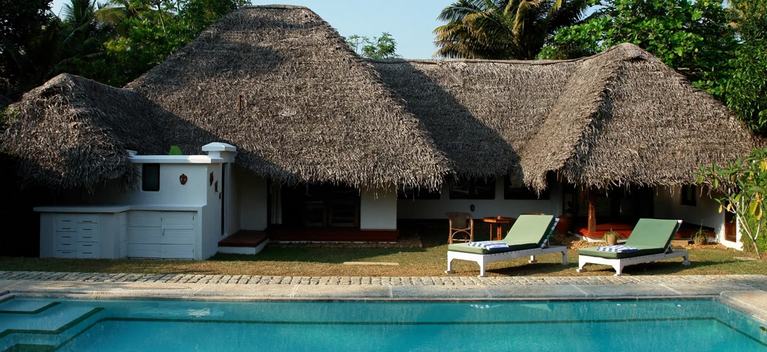The hotel cum resort has 52 villas categorized as Garden Villas and Pool Villas. Each pool villa owns a private small swimming pool, while garden villas (designed in typical Keralite style) are surrounded by banana & papaya trees and lush green land. The rooms are equipped with A/C, mini bar, attached washroom, telephone, TV, refrigerator, coffee making facilities etc.